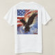 O vôo Eagle com bandeira americana e o nascer do sol no fundo sobre a neve tamparam montanhas