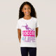 O t-shirt do futebol da menina colorida com o texto, "FUTEBOL é minha vida". Tem um futebol jogar a silhueta da menina que retrocede uma bola de futebol acima do texto.