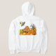 Isto é desenhado com um sistema de abóbora. A design apresenta um pedúnculo de milho, jack ou lanternas, abóboras, gatos e morcegos em uma lua de cheio sobre olhar para as abóboras. Um design excelente para os feriados. Disponível em estilos, cores e tamanhos variados. Também disponível em Mens e crianças.