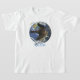 Esta camisa tem um gráfico bonito da procura com seu transmissor satélite que voa sobre a terra. Nenhuma da cópia parte traseira sobre.