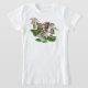 Três duendes de vista originais que frolicking em um remendo gramíneo com um cogumelo e algumas flores.