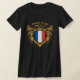 Design legal da crista com a bandeira nacional de cores e de subtítulo de France: Orgulhoso ser francês. Grande presente francês do orgulho.