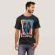 St Michael é o santo padroeiro da polícia e aqui guardara um bastão da polícia em cada mão. T-shirt da polícia para homens. As algemas penduram de sua correia com um fundo da bandeira americana. Presente religioso do agente da polícia. A polícia através de seus caixa e grande anjo voa. Defenda-nos na bandeira da batalha. T-shirt de St Michael da polícia dos homens.