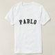 Pablo! É seu nome Pablo? Ou você tem um marido, um namorado, um membro da família masculino ou um homem Pablo nomeado amigo? Em caso afirmativo, esta camisa da "bandeira" é exatamente o presente que você está procurando! As características de design "Pablo" na rotulação preta arqueada através da caixa na pia batismal clássica da faculdade.