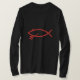 Peixes do diabo. Uma paródia do emblema comum dos peixes de Jesus (ou de ichthys). Um peixe de Jesus com chifres e pitchfork.