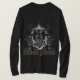 Os esqueletos rebeldes arcos diante do Príncipe da Escuridão nesta crista icônica de metal negro (ou pesadelo). Pentagrama negro simbólico do gênero musical Black Heavy Metal.