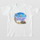 Cena litoral com mar, areia, prancha, escudos, armadilha da lagosta e gaivotas. Porto de Boothbay - Maine através da parte dianteira do design.