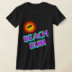 Beach Bum, engraçado, dizendo em letras angustiadas de madeira derivada em cores brilhantes e azuis oceânicas com um contorno amarelo arenoso sobre um fundo de palmeiras tropicais. Perfeito para ficar na praia, piscina ou quintal. Clique em Personalizar para adicionar seu nome ou mensagem, alterar as cores de fundo e muito mais.