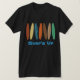 Tee de pranchas riscadas. O texto e o tamanho da prancha podem ser personalizados.