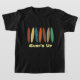 Tee de pranchas riscadas. O texto e o tamanho da prancha podem ser personalizados.