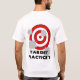 A parte dianteira lê "a escala de acendimento de Pete grande' e a parte traseira caracteriza um grande olho de touros do `' com a pergunta "prática de alvo?" apresentado em uma pia batismal corajosa, nervosa.