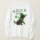 O design original e engraçado dos desenhos animados de labrador retriever criou por Naomi Ochiai de Japão. Um Labrador preto adorável que comemora o dia de St Patrick feliz que veste o chapéu verde irlandês do Leprechaun e o lenço verde com o trevo em sua boca. Presentes agradáveis de Labrador para os amantes irlandeses do cão que possuem Labradors preto!! Você pode personalizar o texto e o mais!