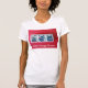 uma camisa branca de t com os 3 azulejos da flor mah-jongg no vermelho e a rainha de mah-jongg das palavras nas letras brancas.