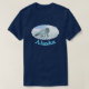 Branco em branco. Uma pintura digital de uma Raposa Árctica, Vulpes lagopus, no gelo polar. O sol pendura baixo no brilhante céu ártico azul. Não olhe para o sol pois pode danificar os seus olhos. Leitura de texto, "Alaska" aparece em azul e branco brilhantes. A Raposa Árctica é confortável a frio profundo; não começa a arrepiar-se até que as temperaturas caiam para cerca de -70 °C devido à sua pele densa e multicamadas. Outras adaptações a um clima rígido incluem pelo nas solas dos pés, orelhas curtas e um pequeno focinho. As raposas árcticas vivem em tocas, numa nevasca que podem enrolar na neve para criar abrigo. O casaco da raposa do Ártico, por vezes cinzas azuis, é uma camuflagem de inverno muito eficaz. As matizes naturais permitem que o animal se misture no ambiente. Durante a curta estação quente, sua casaco muda para marrom ou cinza, novamente atuando como camuflagem em rochas e plantas tundra. Durante o inverno, quando as presas são escassas, as raposas seguem as ursinhas polares caçadoras que se alimentam de restos. Durante o verão comem roedores, aves, ovos e até peixes. Também se alimentarão de bagas e algas. As raposas árcticas têm uma audição extremamente entusiasmada, auxiliadas pelas suas orelhas largas e viradas para a frente, que lhes permitem localizar a posição exata das suas presas sob a neve. Se ouve algo se movendo sob a neve ele salta para o ar e solta, socando a neve para pegar sua presa. O alcance das raposas do Ártico é circunpolar; elas podem ser encontradas em todo o extremo norte. O único mamífero terrestre nativo da Islândia, chegou caminhando sobre o gelo no mar no final da última era glacial.
