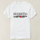 A parte "Casado" de "Recem casados" em um design preto e vermelho que corresponde à noiva e ao noivo de cada visto.