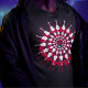 Um na moda e um design de mandala exclusivo sobre música com muitos silhuetas de guitarra vermelha e branca em círculos