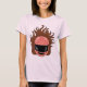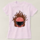 Um capacete cor-de-rosa com cabelo marrom, uma outra camisa para um cavaleiro da mulher.
