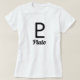 Uma t-shirt branca com o símbolo de Plutão com texto Plutão sob o mesmo. Você pode personalizar esta t-shirt para alterar a cor da fonte, alterar o tamanho e o tipo da letra e muito mais para transformá-la em sua própria t-shirt exclusiva.