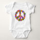Um sinal de paz floral de tons cor-de-rosa, turquesa, amarelo, laranja, roxo, verde e preto. Note-se que, devido às pétalas pretas, este design não deve ser colocado sobre fundo preto.