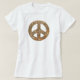 O t-shirt do símbolo de paz caracteriza a imagem de um sinal de paz do brilho do ouro com efeito do diamante. Bling! Note por favor que esta camisa não tem o brilho real ou os diamantes ou os diamantes da falsificação sewn na camisa. Se desejado assim, alguém poderia usar uma arma de colagem para prender ornamentações sparkling sobre a imagem impressa.