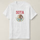 Um t-shirt que caracteriza uma águia mexicana afligida que caracteriza o sobrenome Sota.