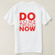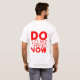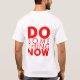 T-shirt branco com rotulação vermelha.