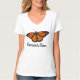 Design original das belas artes de uma borboleta de monarca bonita pelo artista Carolyn McFann em uma camisa customizável das senhoras do v-pescoço para todas as mães ou qualquer um que ame borboletas de monarca.