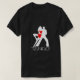 Silhuetas brancas e vermelhas masculinas e femininas de casal tango. Mande SMS Tango! debaixo da imagem. Dança e camiseta negra ou escura para qualquer um. Você pode escolher outro estilo, cor, gênero e tamanho da camisa. Divirta-se