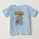 Meninos duros do trator, camisetas e T-shirts de criança, fatos-chave, camisetas de manga compridas, T-shirts de raglan, romperes, chapéus, camisas de camisola, capuzes de pulôver, fatos de futebol e outros tratores roupa com um trator de laranja com um rapaz louro com um chapéu azul e um texto laranja que lê Trator Tough!