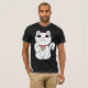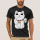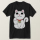 O maneki-neko ou o gato beckoning são um símbolo da boa sorte em Japão. Os gatos, encontrados em uma variedade de cores e estilos, estão sentando-se geralmente acima com a uma pata aumentada em um gesto de beckoning. O Maneki-neko é uma vista comum em Japão, colocado nas entradas das lojas e dos restaurantes, na esperança que trará a boa sorte e a prosperidade sob a forma dos clientes e do negócio extra. Seu vestuário do gato a cor, e que de suas patas são aumentados, mesmo a altura em que sua pata é aumentada, tudo tem o significado. * a pata direita acima - traz a boa sorte com dinheiro * deixou a pata acima - traz muitos clientes/visitantes * com o sino do ouro - traz a boa fortuna * com lenço vermelho - tira a atenção * com moeda de ouro - mantem a riqueza assim que este deve ser um tshirt muito afortunado!