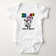 Uma vaca adorável com balões do aniversário diz a vaca que santamente eu sou 1 em t-shirt personalizados do aniversário e bodysuits que você pode facilmente adicionar o nome do seu bebê a!