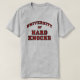 A universidade do duro bate o t-shirt. T-shirt engraçado da universidade para mostrar que você se graduou de uma escola resistente da vida -- ou talvez você ainda está atendendo a classes. UNIVERSIDADE arqueada com o resto do texto horizontalmente. Letras vermelhas com beira preta.