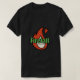 O logotipo vermelho em um t-shirt preto