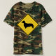 Uma placa amarela de travessia de dachshund em uma camisa.