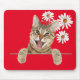 Cinzas e gato-do-mato-castanho com margaridas sobre fundo vermelho. A cor de fundo pode ser alterada.