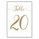 Dourada tabela número 20 de 30 cartões de mesa de casamento