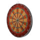 Um design considerável do dartboard. O fundo é profundamente obscuridade - laranja, desvanecendo-se a mesmo mais escuro para a borda, com vestido para fora, olhares manchados e riscados. As camas do dartboard são definidas claramente. Os segmentos mais claros são uma versão mais clara do fundo. Os dobros e os anéis triplicar-se estão mais ou menos nas cores tradicionais, adaptadas para caber o design.