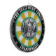 Trabalho de arte circular a negrito mostrando um veado numa floresta pacífica com um alvo afiado.