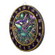 Transforme a sua caverna de homem ou a sua cabana de pesca com esta extraordinária trabalho de arte. A peça central apresenta uma órca majestosa, seu corpo cintilando com padrões intrincados em roxo profundo, ouro e azul vibrante, evocando a sensação de vidro colorido. Nadando graciosamente ao lado dela, uma tartaruga lindamente detalhada adiciona charme ao tema aquático. Toda a cena é enquadrada por uma impressionante borda circular adornada com flores de ouro, pedras verdes luminosas e sotaques celestes, dando-lhe uma vibração submarina etérea. Esta peça de arte combina encanto rústico com fantasia, fazer-a como uma adição perfeita a espaços recreativos ou lojas de caça. Seja você um fã da vida marinha, ame o excelente ao ar livre, ou apenas queira uma decoração única, esta trabalho de arte deve ser cativante.