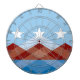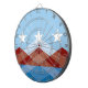 Darboard com uma design com a bandeira de Peoria, Arizona. Uma bandeira azul, marrom e branca com picos de montanha e três estrelas