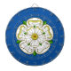 Dartboard com design com uma bandeira do condado histórico de Yorkshire, Inglaterra, Excelente-Bretanha; bandeira com rosa branco num campo azul