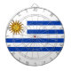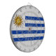 Essa design possui a bandeira nacional do Uruguai, que é um país da região sudeste da América do Sul. O Uruguai faz fronteira com a Argentina a oeste e a sudoeste, com o Brasil a norte e a leste, com o Rio de Prata a sul e com o Oceano Atlântico a sudeste. A capital do Uruguai é Montevidéu, que é também a maior cidade do país. Outras grandes cidades do Uruguai incluem Salto, Ciudad de la Costa, Paysandú, Las Piedras, Rivera, Maldonado, Tacuarembó, Melo, Mercedes, Artigas, Minas, San José de Mayo, Durazno, Flórida, Barros Blancos, Ciudad del Plata e San Carlos.