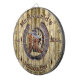 Um bar de bar de madeira ocidental rústico do vaqueiro da porta de celeiro, com as botas de uns calçados afortunados do cavalo, de roda de vagão e de vaqueiro perfeitas para que os rancheiros e os vaqueiros adicionem seu nome a.