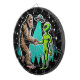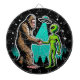 Essa imagem caprichosa ilustra um encontro amigável entre dois seres lendários: Pé Grande e alienígena. A cena, colocada contra um céu noturno estrelado com silhuetas de pinheiros, mostra Pé Grande e a alienígena apertando as mãos sob o feixe de um OVNI pairando acima. Pé-grande, coberto de pelo marrom, fica à esquerda enquanto a alienígena verde, humanoide, com uma cabeça grande e olhos negros, fica à direita. A combinação dessas figuras icônicas em uma reunião pacífica adiciona uma reviravolta divertida a ambos os mitos, fazer-a uma peça fascinante e humorística para os entusiastas do inexplicado.