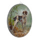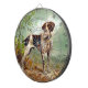 Cão caçador com pássaro na boca. Desenho colorido da safra. Retriever com pele de caçador colorida