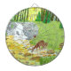 Um alvo de dardos com uma bela cena florestal, incluindo uma cerva e seu filhote bebendo de um riacho perto de uma cachoeira. Obra de arte original de W.B.