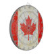 Um estilo antigo único, o conselho de dart com bandeira de folha do mapa canadense em tons vermelhos e brancos. Projetado usando a bandeira canadense e adicionando um pouco de tratamento de safra. Produzida por Sarah Trett. Ficaria excelente em um quarto patriótico, salão, bar ou sala de jogos, no Canadá.