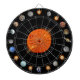 Um sistema solar divertido, chamado dartboard. Possui o sol central com planetas, luas e super-noves circundantes. Também tem um perímetro de contagem de 20 contagens para pequenos alvos adicionados para mais desafios. Os planetas estão numerados até 8 e então é uma contagem aleatória de planetas anões, luas e supernovas. Perfeito para jogos tradicionais de dardo, novos como você, ou como uma legal obra de arte. Aproveite!