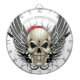 Design do crânio com asas e guitarra. Design por Sean Forney.