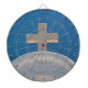 Uma cruz numa igreja branca contra o céu azul. A imagem foi tirada na ilha de Naxos, Grécia, ©Angelika Stern